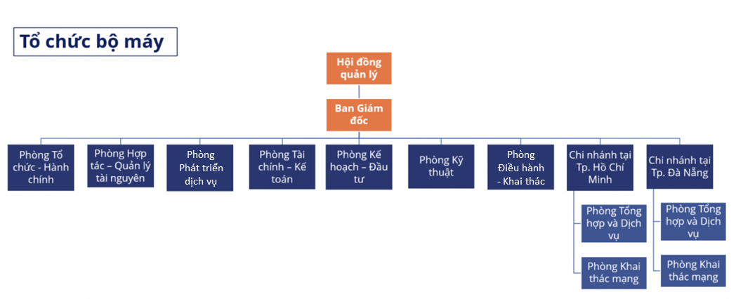 Tổ chức bộ máy, biên chế của Trung tâm bao gồm Hội đồng quản lý, Ban Giám đốc, 7 Phòng, Ban và 02 Chi nhánh: