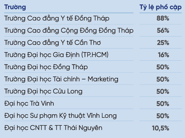 Tỷ lệ phổ cập tên miền “id.vn” tại một số trường đại học/cao đẳng tiêu biểu
