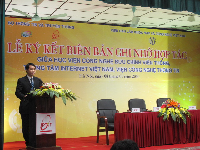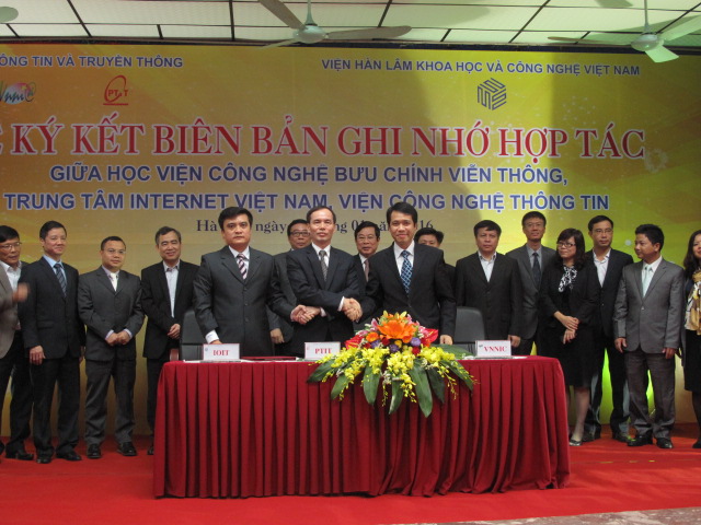 Ngày 08/01/2016, Học viện Công nghệ Bưu chính Viễn thông, Trung tâm Internet Việt Nam và Viện Công nghệ thông tin thuộc Viện Hàn lâm khoa học và công nghệ Việt Nam cùng ký thỏa thuận hợp tác về nghiên cứu, triển khai thử nghiệm và đào tạo trong lĩnh vực công nghệ thông tin, Internet.